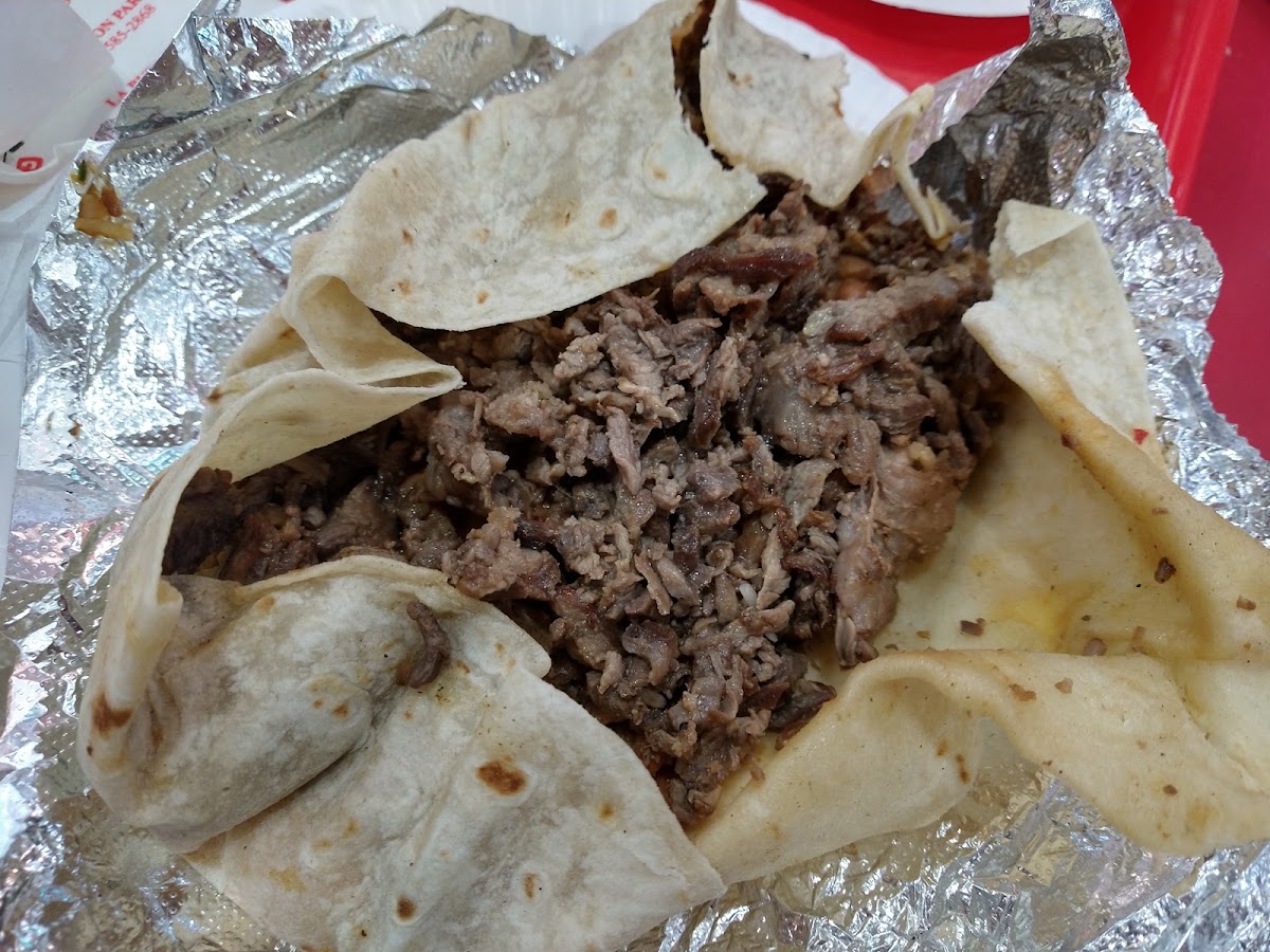 The menu leans heavily on classic Mexican staples with a focus on meats prepared in authentic styles, such as carnitas, lengua, carne asada, and lamb barbacoa. The Carnitas Lengua and 3 Tacos de Tripas stand out as items to try if you’re comfortable with rich, offal-based dishes. Burrito fans typically gravitate toward the carne asada burrito, noted for its good seasoning and portion size. Breakfast options like Huevos con Chorizo and Huevos con Jamón make this a solid morning stop as well.